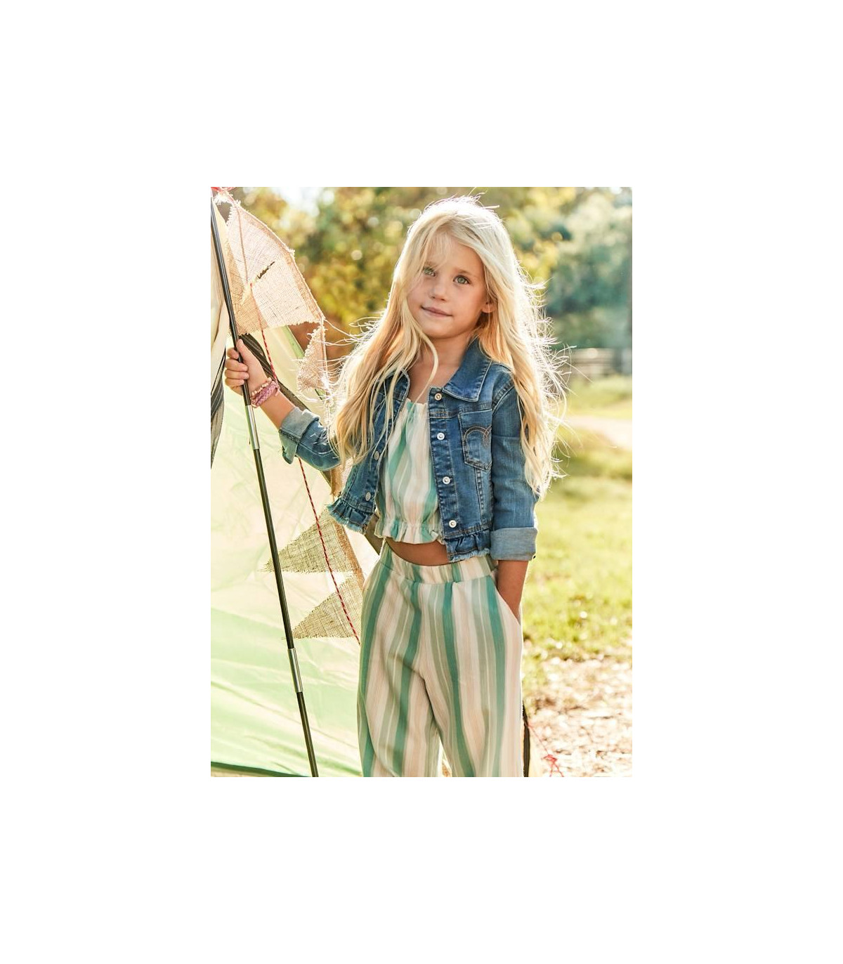 Cazadora de Mayoral con cierre con botones en la parte delantera. Diseño con volante en el bajo de la prenda.
