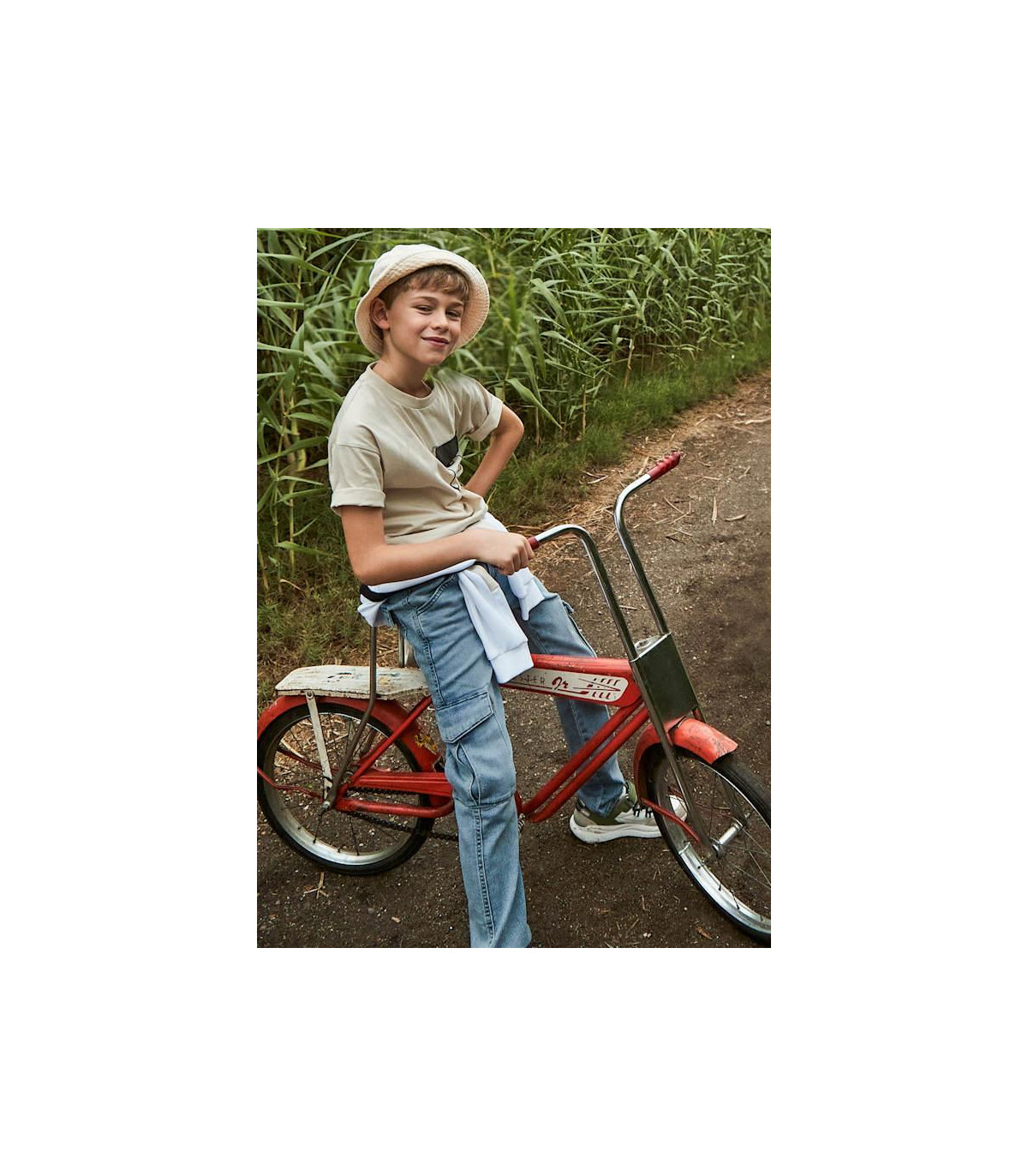 Pantalón de Mayoral vaquero con cintura con goma regulable con botones en el interior. Cierre con botón y cremallera. Bolsillos funcionales en la parte delantera, laterales y trasera de la prenda.