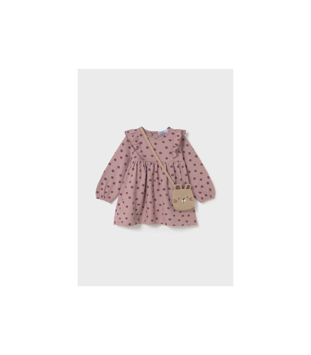 Vestido de Mayoral con cuello redondo con cierre con botones a presión en la parte posterior.