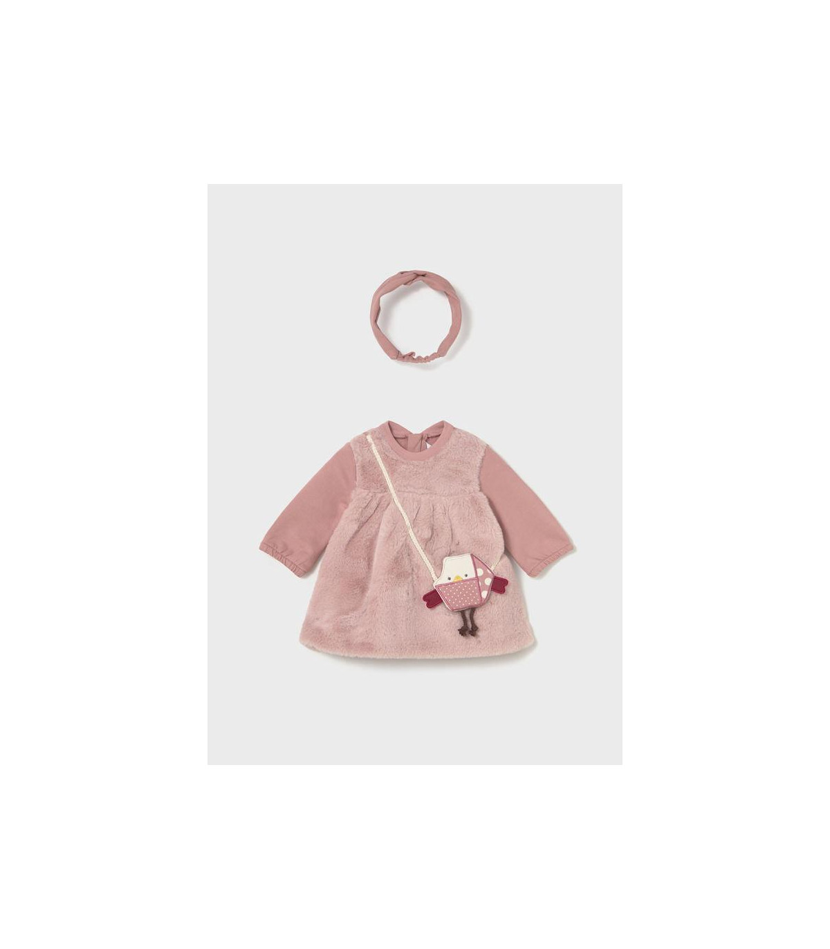Vestido de Mayoral con cuello redondo con cierre con cremallera trasera invisible.