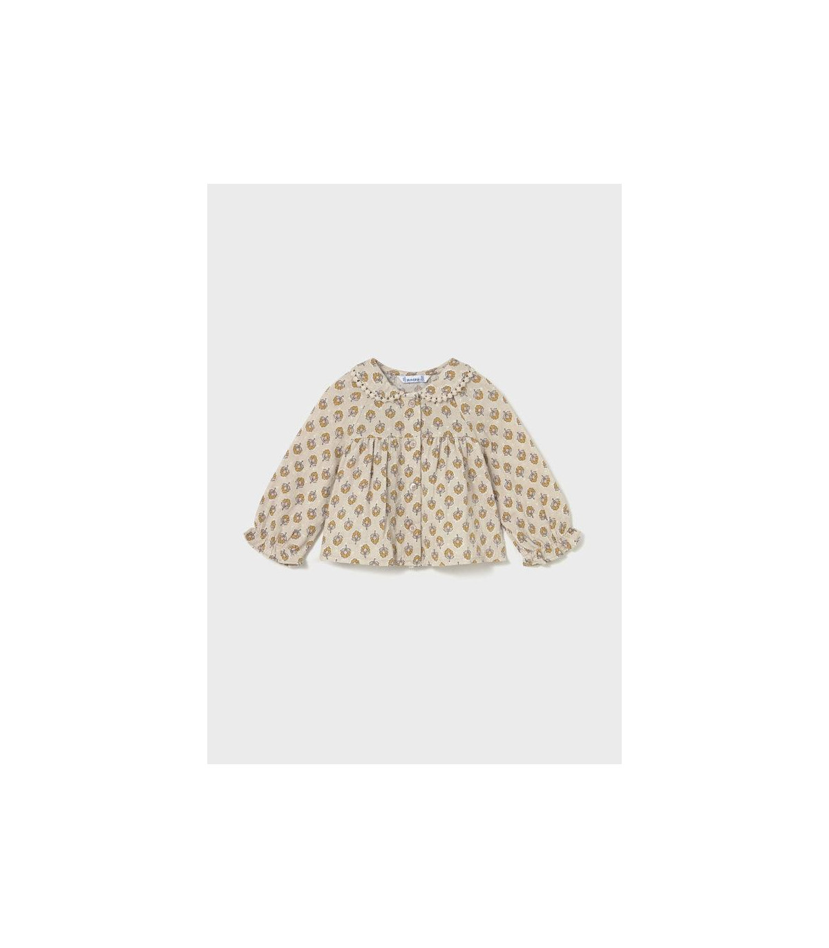 Blusa de Mayoral con cuello bebé con cierre con botones en la parte delantera.
