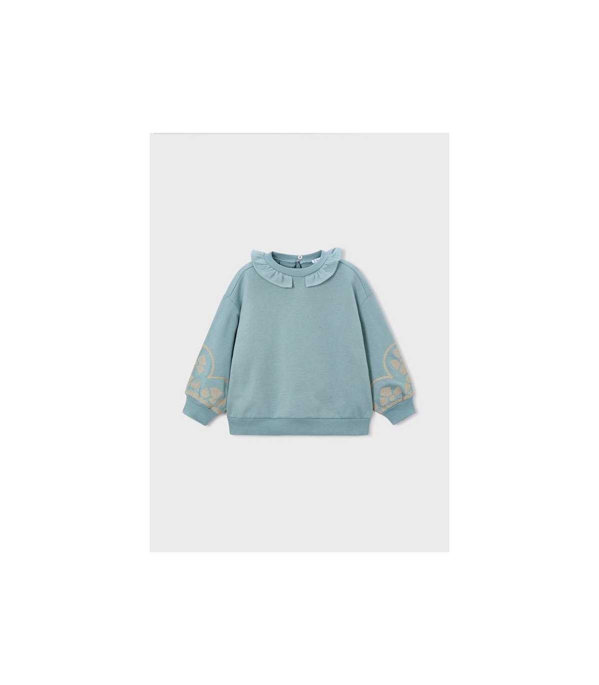 Sudadera de Mayoral con cuello redondo con volante y bordados en las mangas.