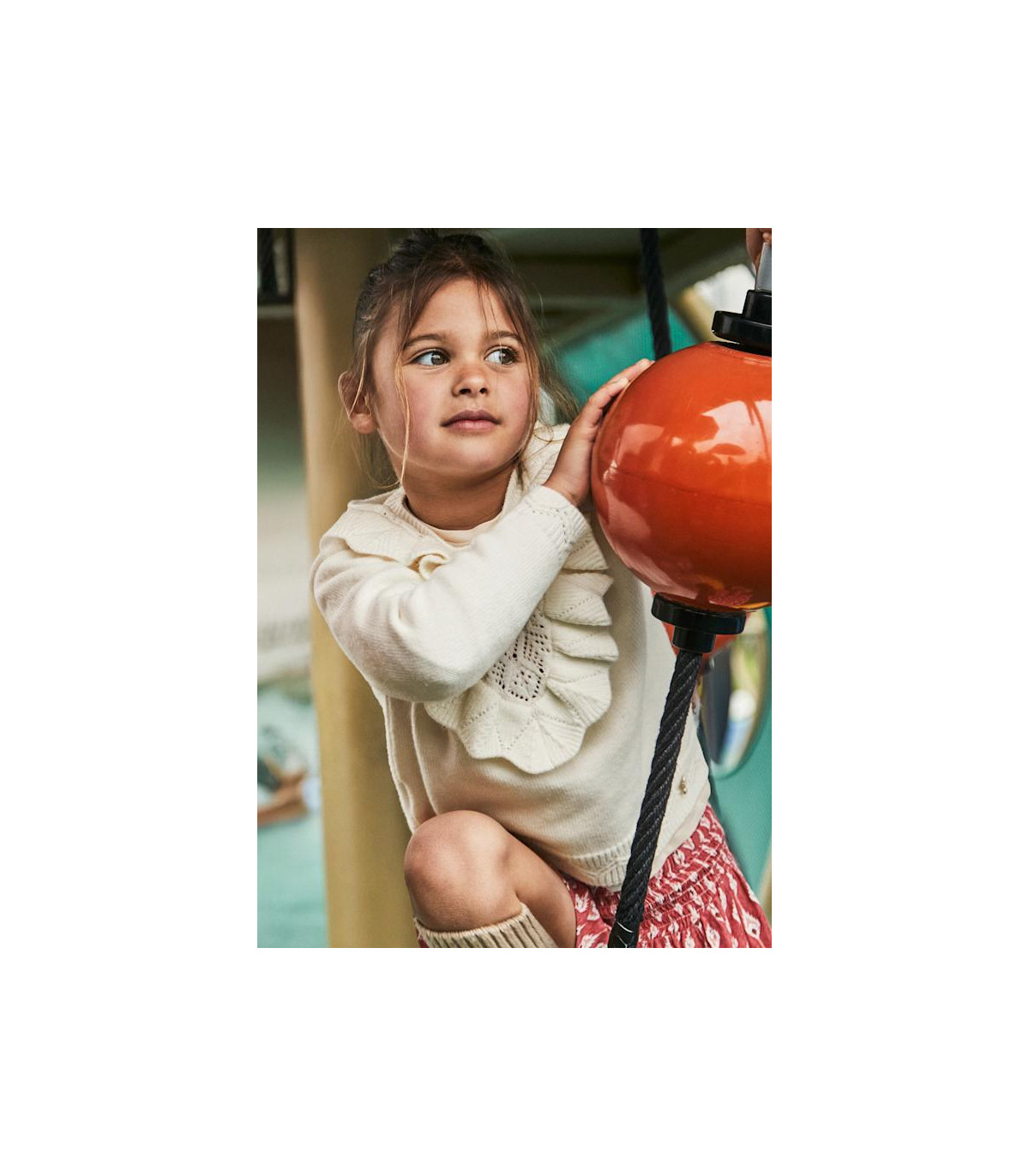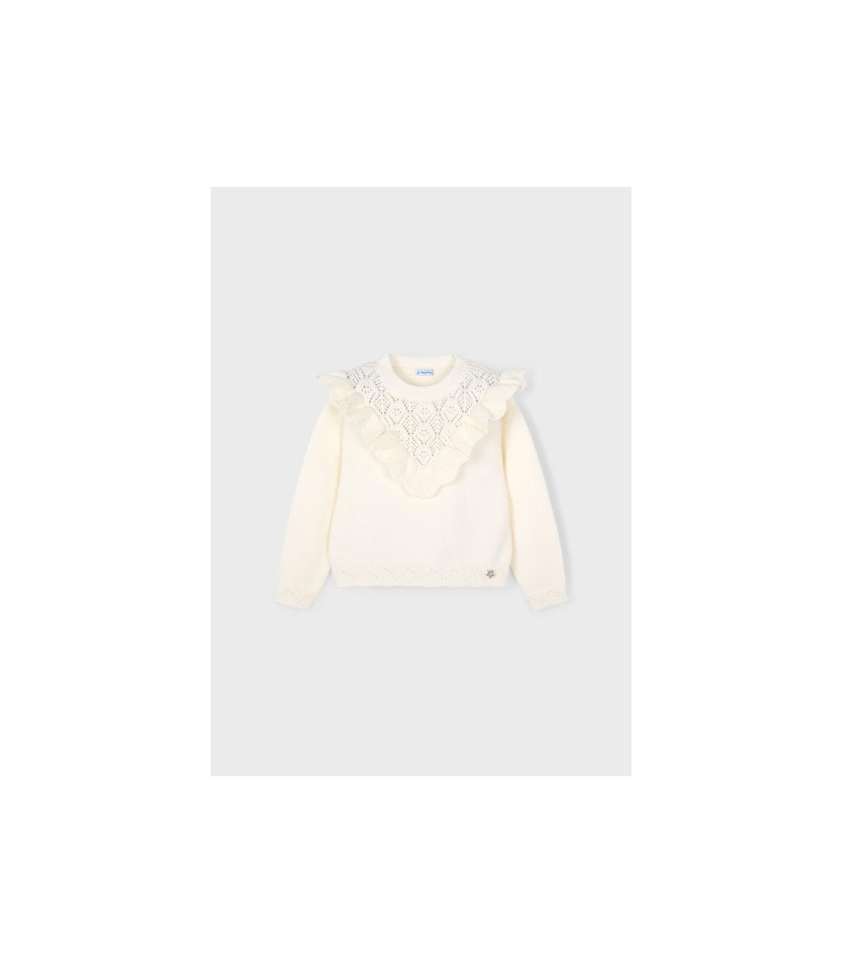Jersey de Mayoral con cuello redondo y volante decorativo en la parte delantera. Tejido de punto tricotosa de tacto suave.