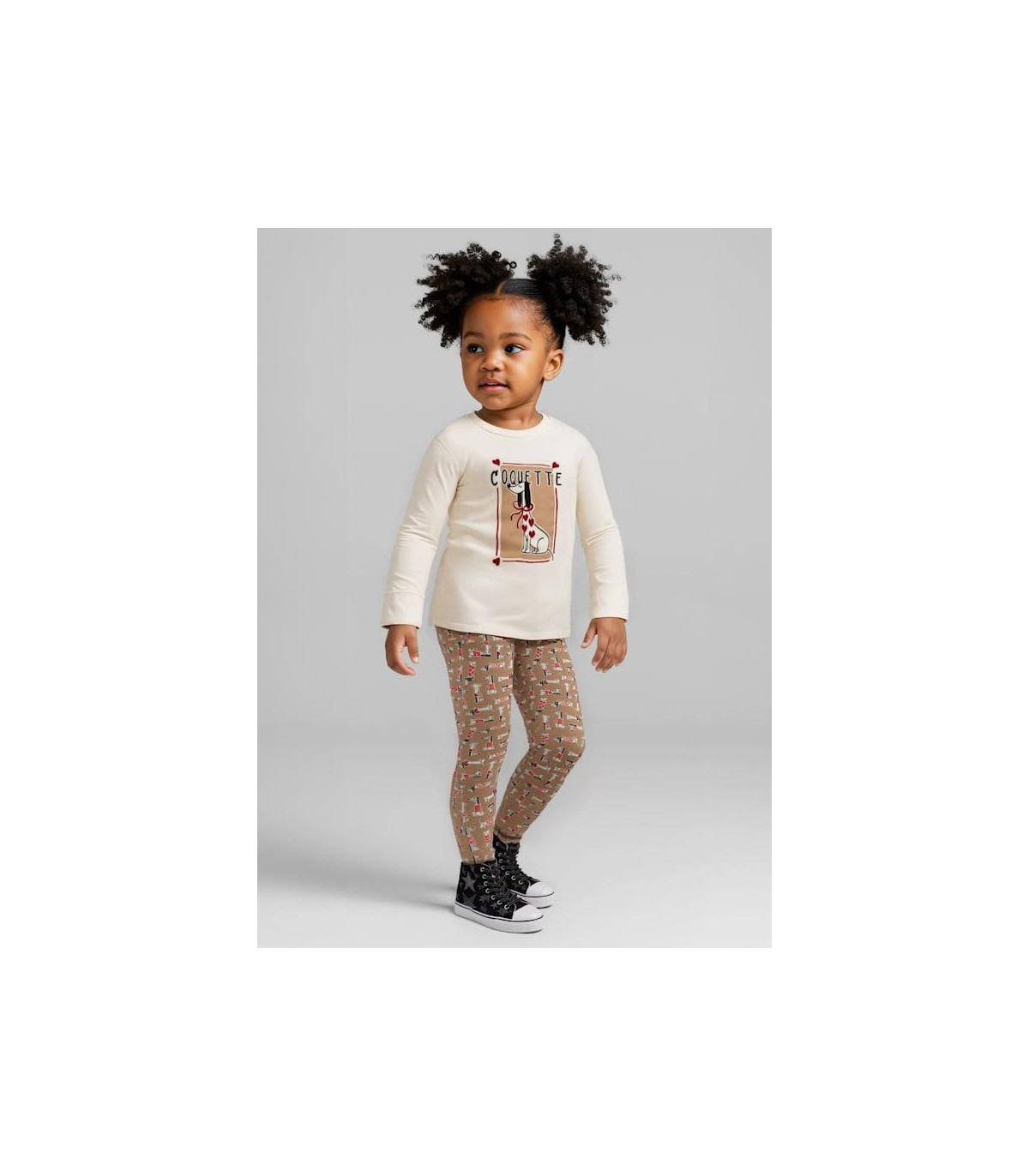 Conjunto de Mayoral compuesto por dos prendas. Camiseta con cuello redondo con dibujo en la parte delantera. Pantalón tipo legging con cintura elástica.