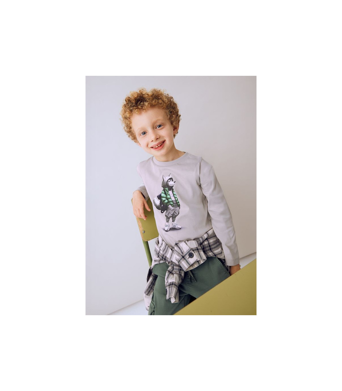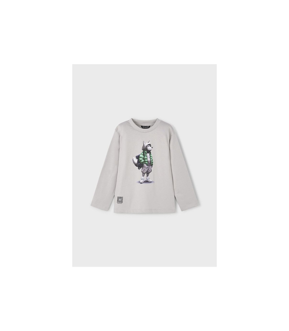 Camiseta de Mayoral con cuello redondo y dibujo en la parte delantera. Prenda con código QR perteneciente a la colección interactiva PLAY WITH. Al escanear el QR accederás a un videojuego exclusivo de Mayoral.