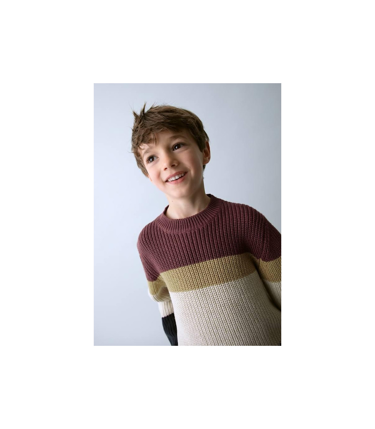 Jersey de Mayoral con cuello redondo. Confección combinada en distintos tejidos para conseguir un diseño único.