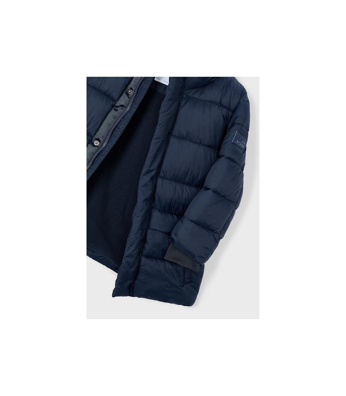 Chaquetón de Mayoral con cuello con capucha y cierre central delantero con cremallera. Bolsillos funcionales en la parte delantera. Forro polar en el interior.